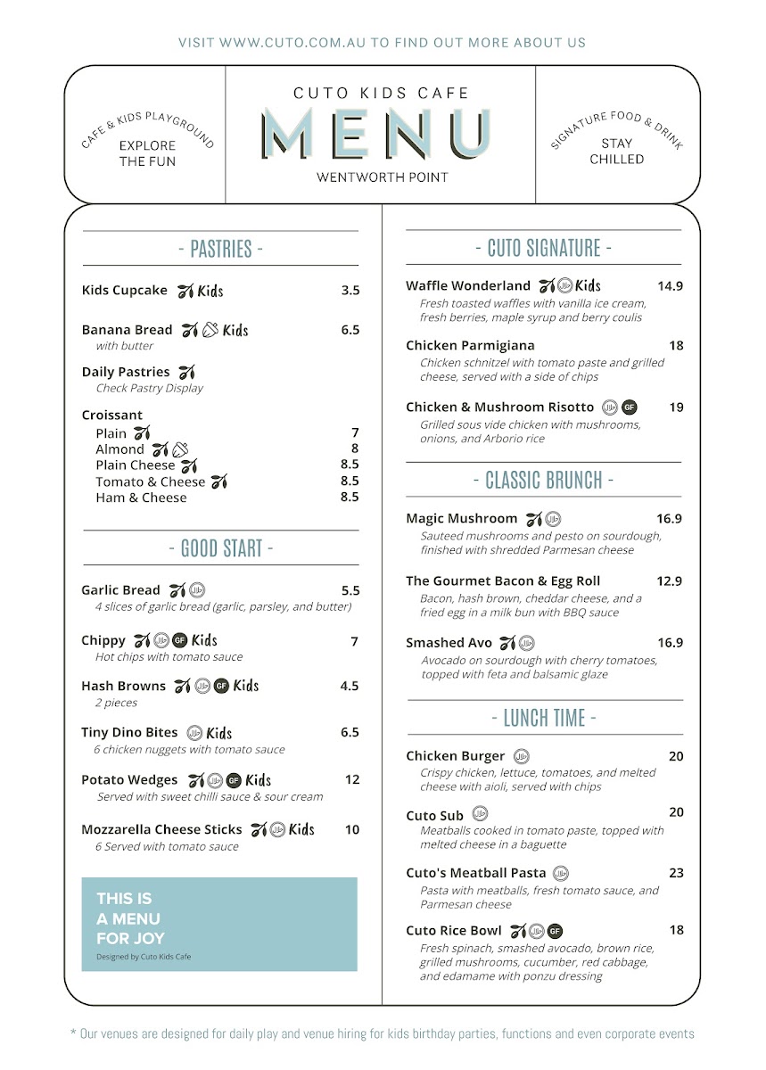 Whether you're visiting for a casual afternoon outing or celebrating a special occasion, Cuto Kids Cafe is more than just a dining spot. It’s a community space where children can flourish, and parents can find comfort, making it a must-visit destination in Wentworth Point. Gather your loved ones and embark on an adventure where playtime meets delicious meal times!